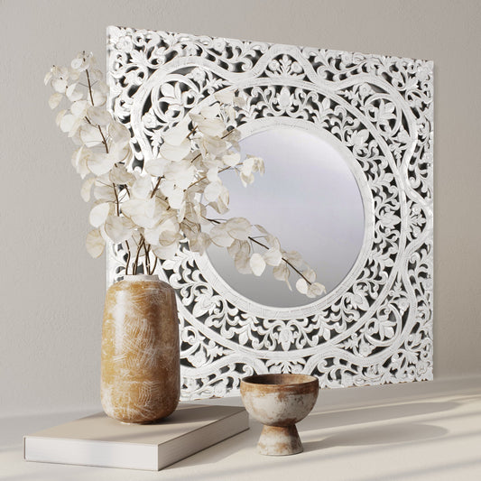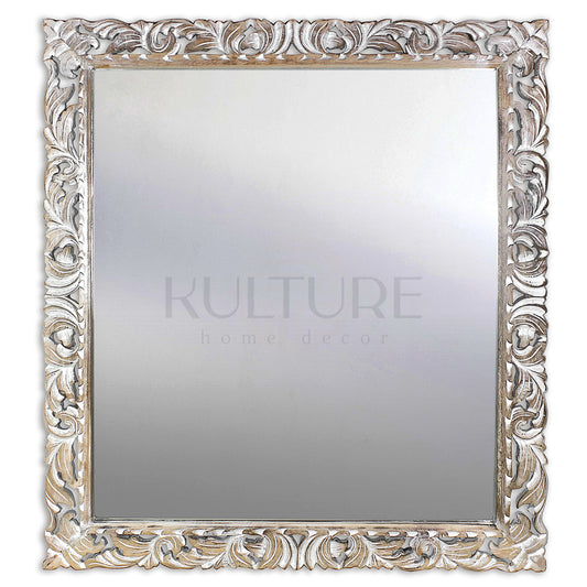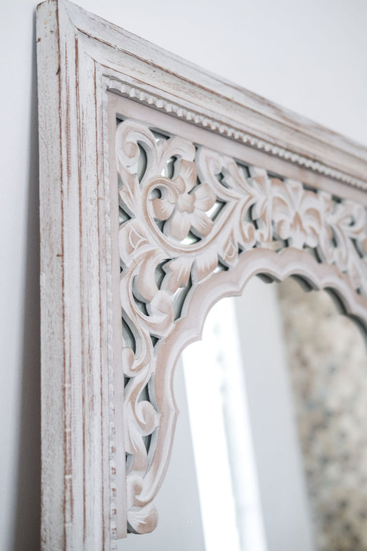 Hand Carved Mirror "Dewata" White Wash - 100 cm
