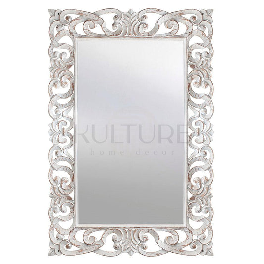 Hand Carved Mirror "Gemilang" White - 90 cm