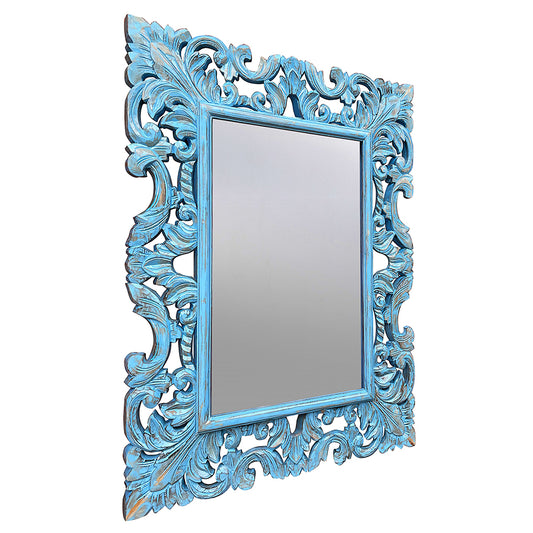 Hand Carved Mirror "Biru" Blue Wash - 90 cm