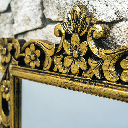 Hand Carved Mirror "Cempaka" Gold Wash - 180 cm