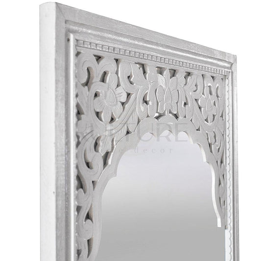 Hand Carved Mirror "Cahaya" in white - 180 cm