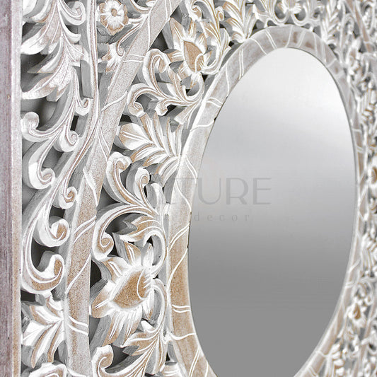 Hand Carved Mirror "Nurani" Antic-wash - 80 cm