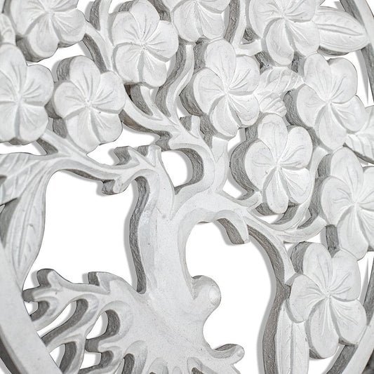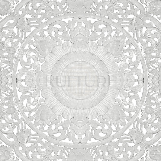 Carved Decorative Panel "Kamboja" - White - 60 cm