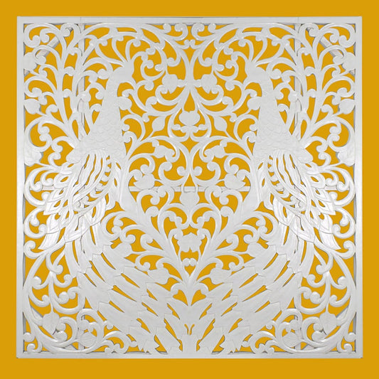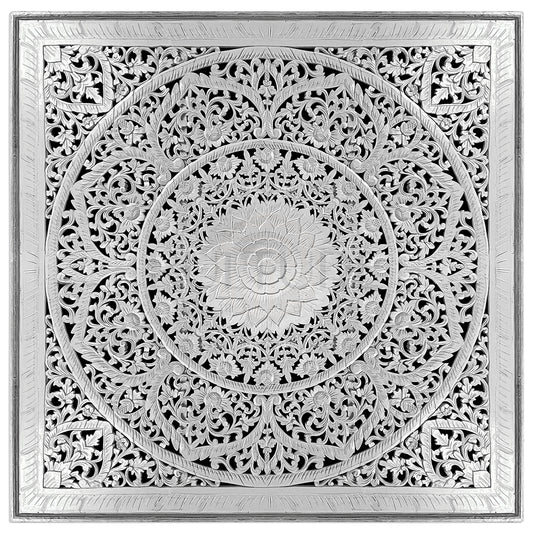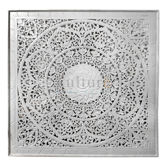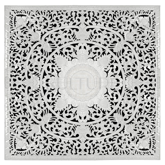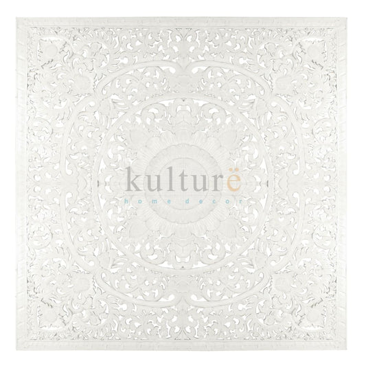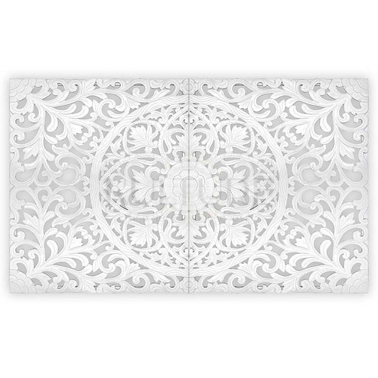 Carved Full Bed Headboard "Raflessia" - White - USA