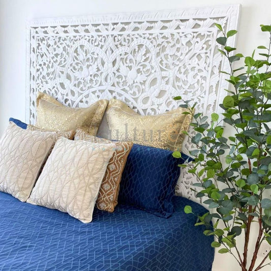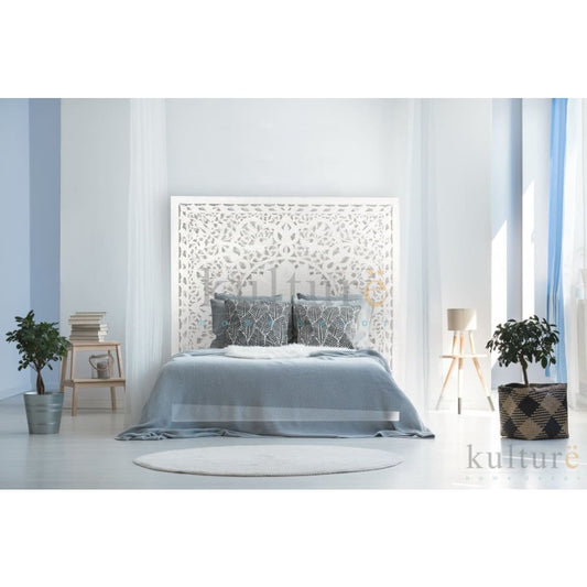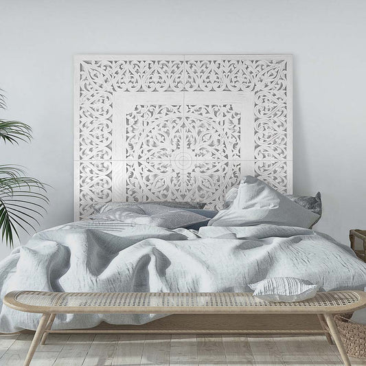 Carved Full Bed Headboard "Manusa" - White Wash- USA