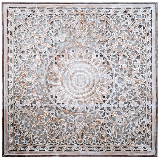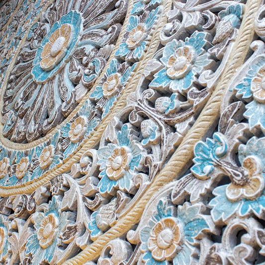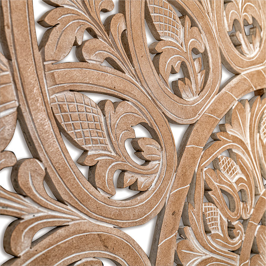 Carved Full Bed Headboard "Raflessia" - Antic-wash