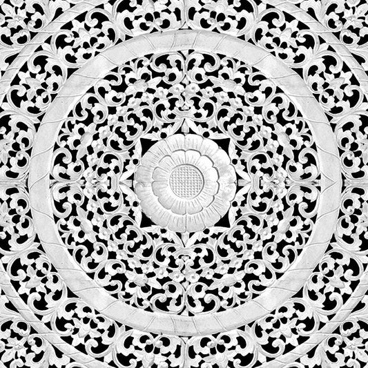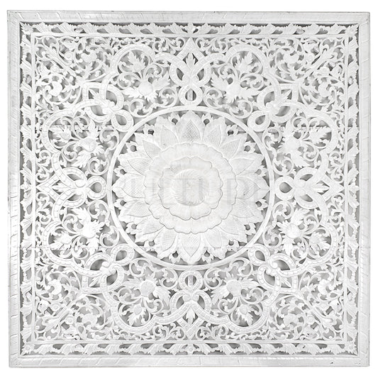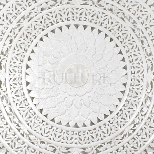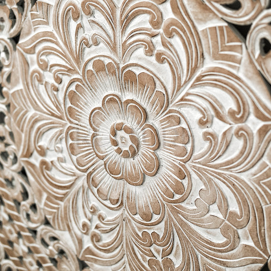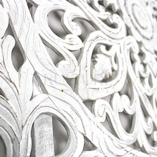 Carved Full Bed Headboard "Raflessia" - White