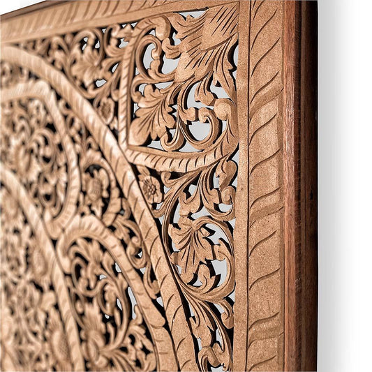 Carved Full Bed Headboard "Manusa" - Natural Brown