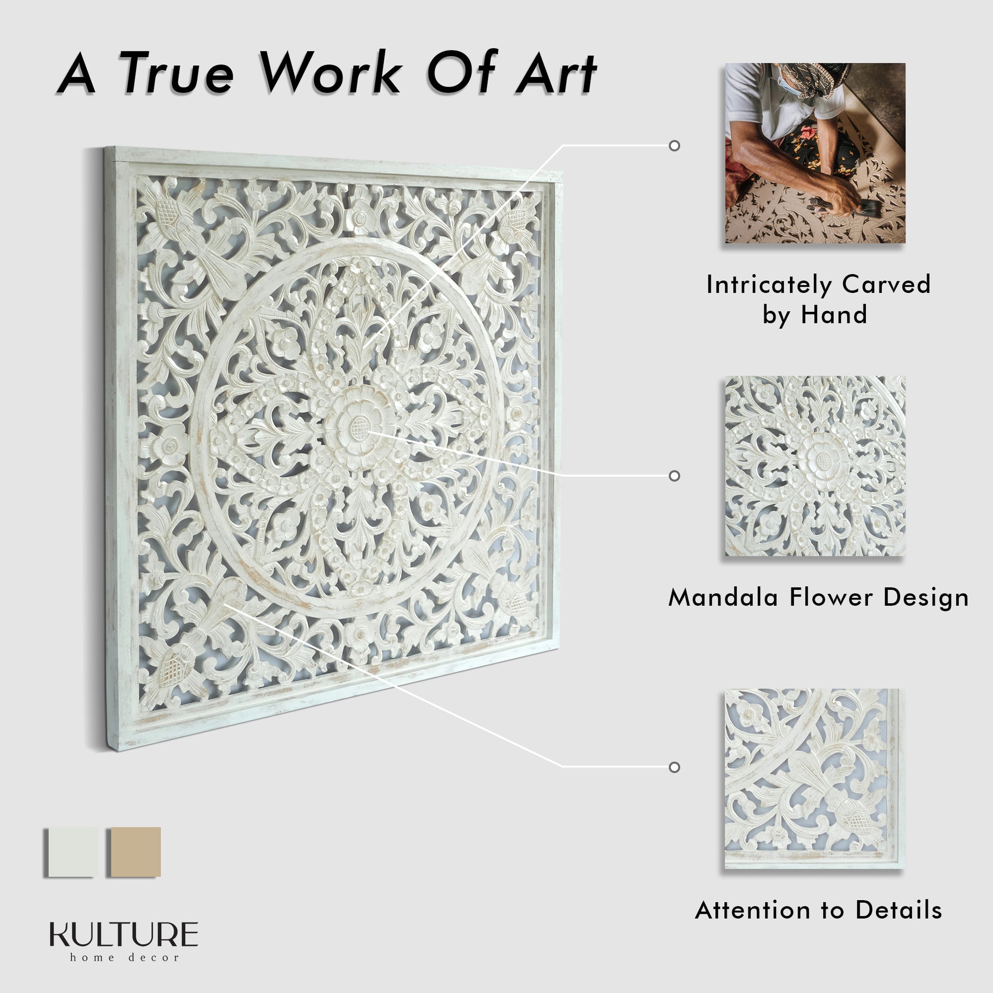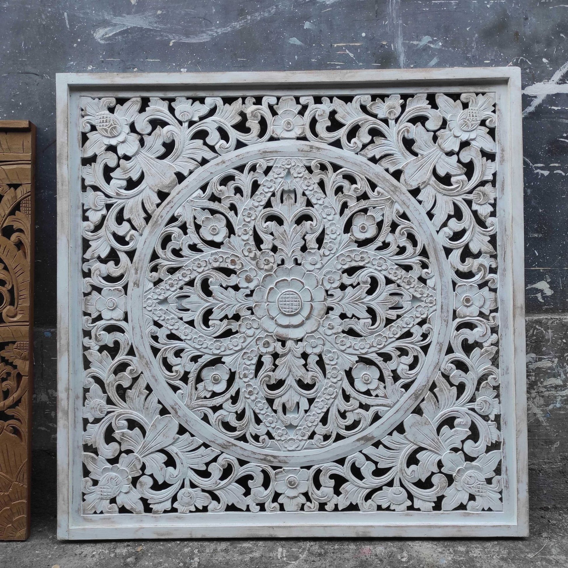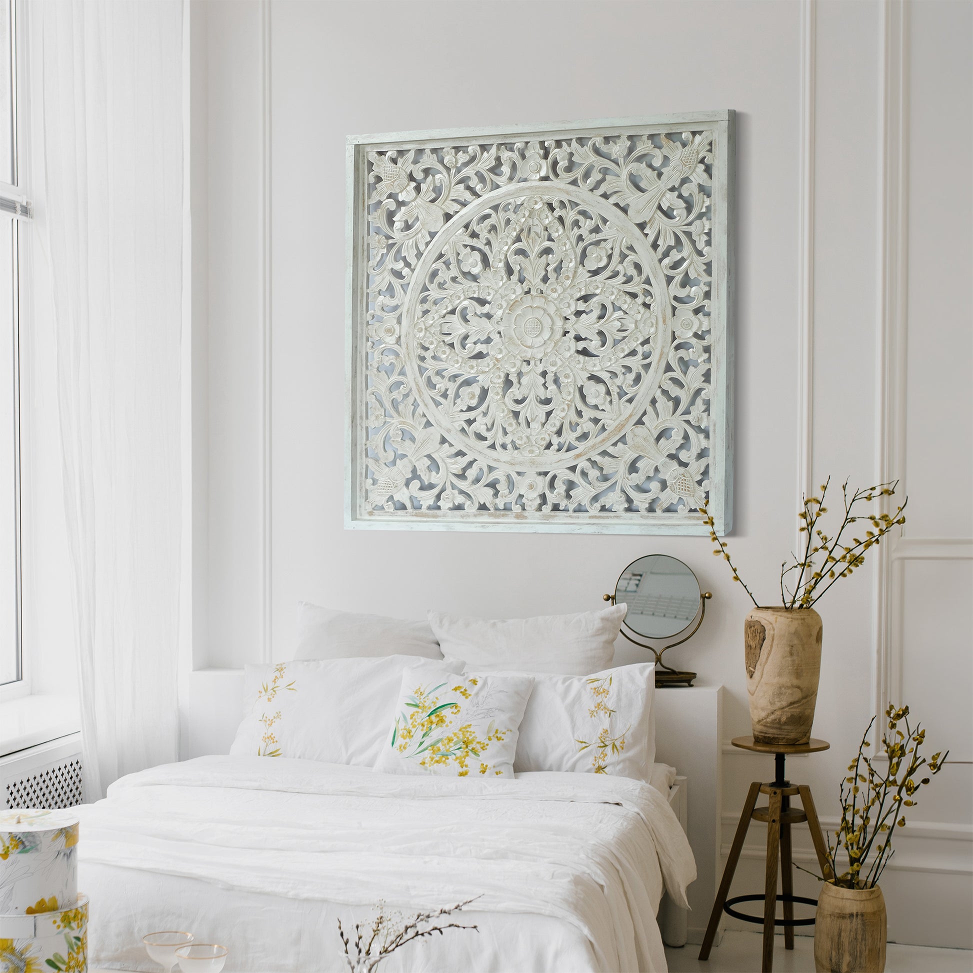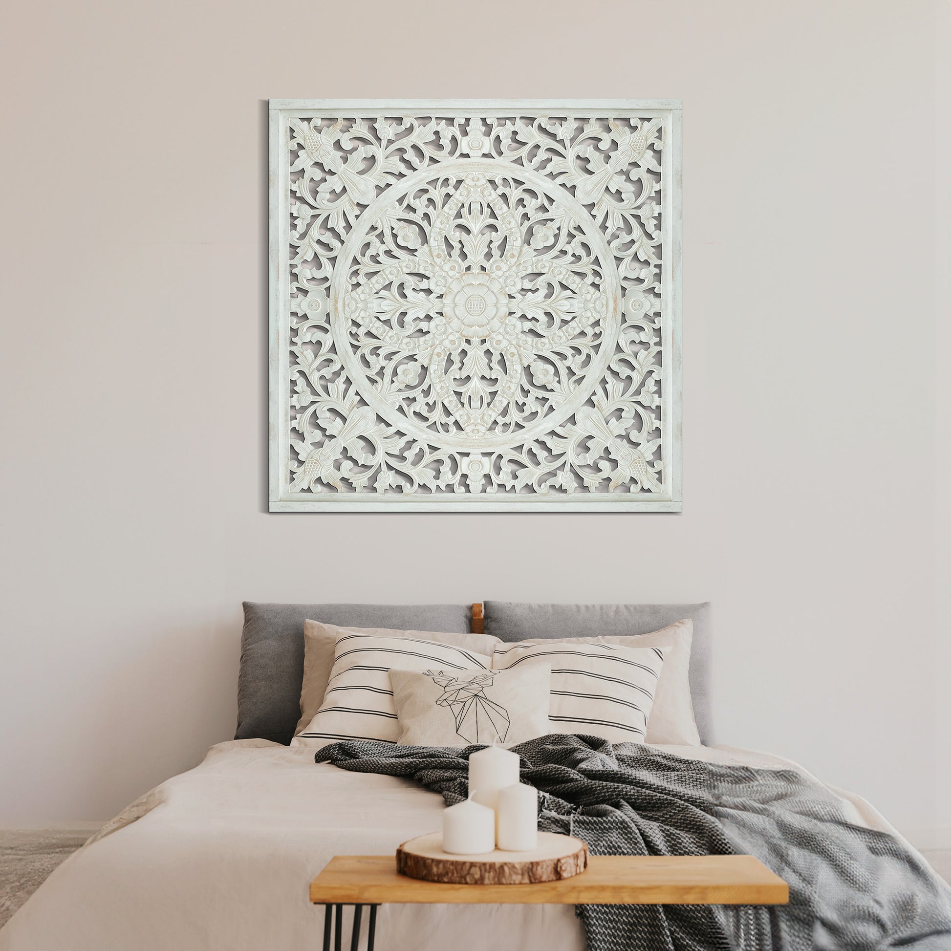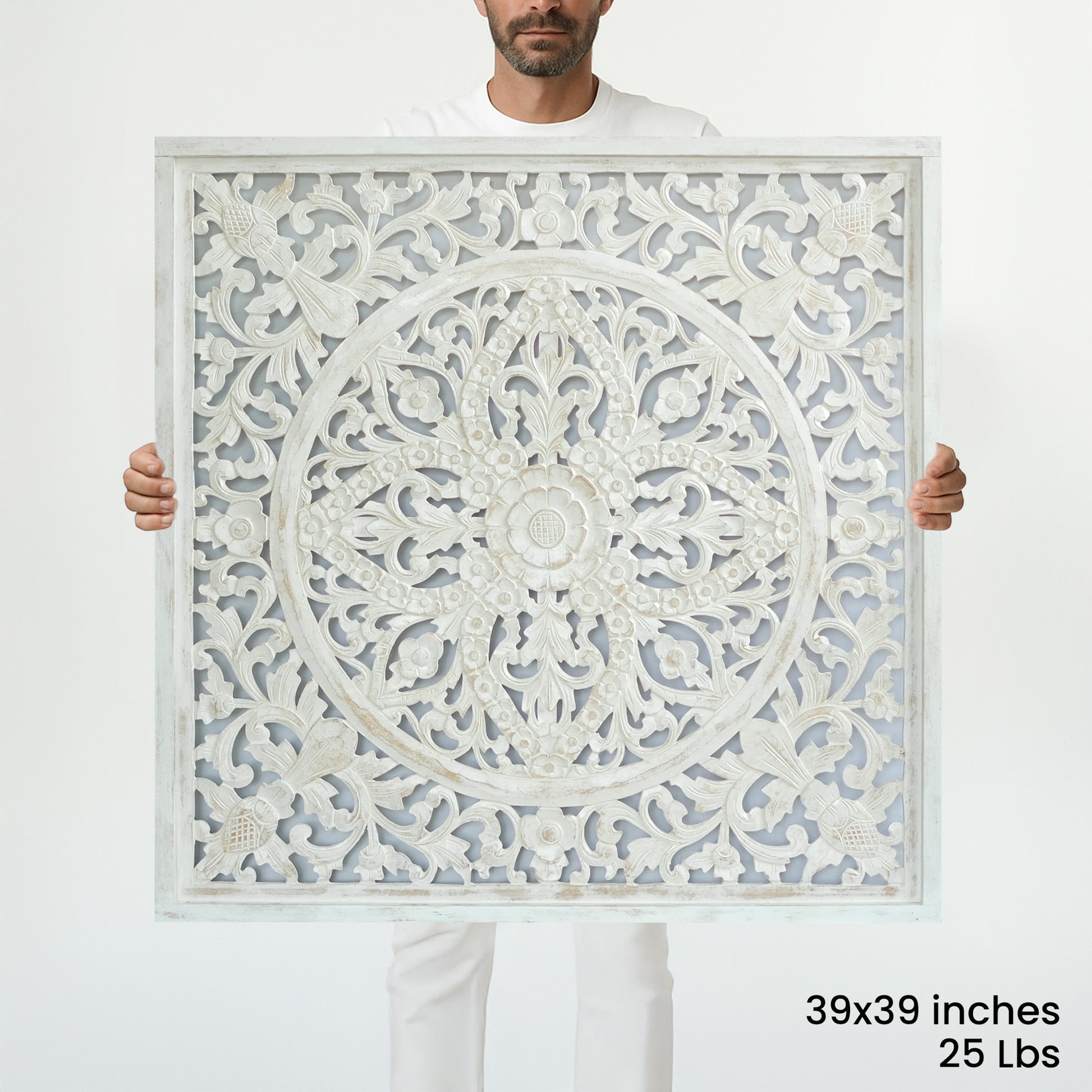 Large Decorative Panel "Ceningan" 40x40 inches - White Wash - [US-stock]