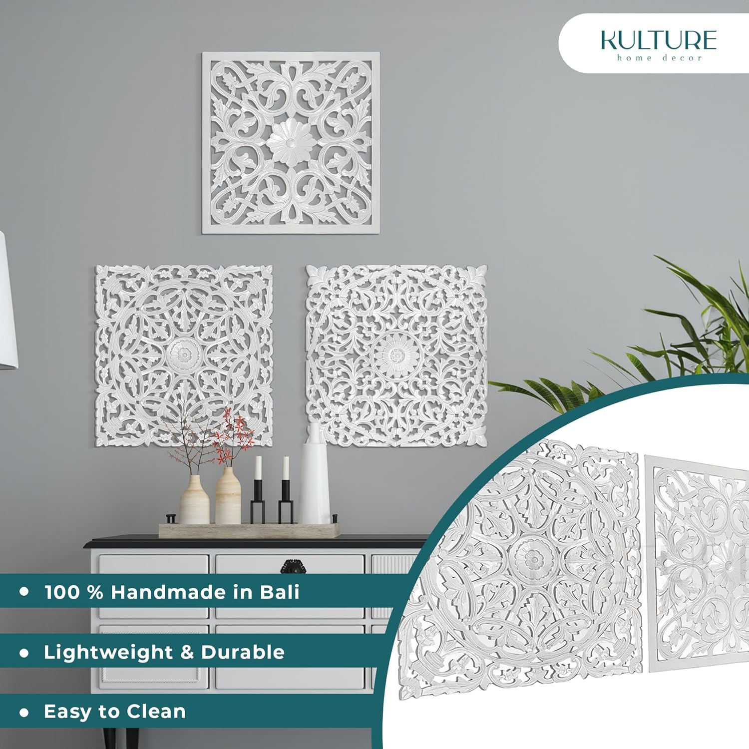 Set of 3 Decorative Panels "Pererenan" 20x20 inches each