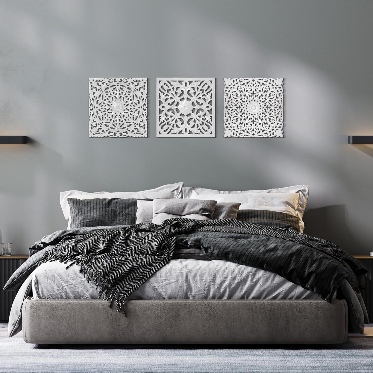 Crafted by skilled Balinese artisans, the Set of 3 Decorative Panels "Pererenan" is a masterpiece of tradition and craftsmanship. Each piece is 100% handmade, intricately carved using simple tools—no machines—ensuring unmatched detail and uniqueness. Rooted in spirituality and beauty, this headboard brings the essence of Bali into your home.