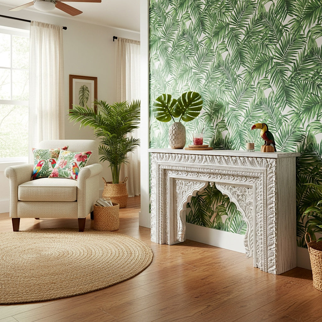 Hand-Carved Wooden Console Table “Ashama” – Distressed White Finish - 130 cm