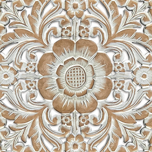 Carved Decorative Panel "Kamboja" - White - 60 cm
