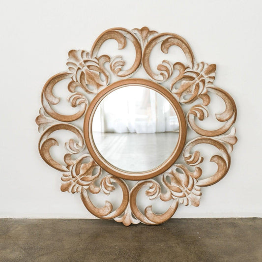 Hand Carved Mirror "Roopa" in Antic Wash - 80 cm
