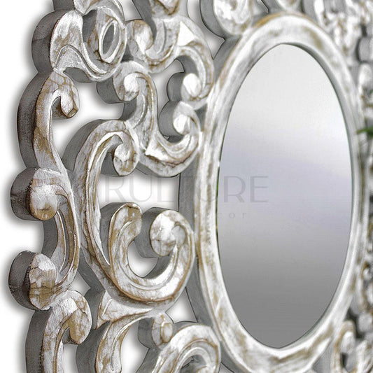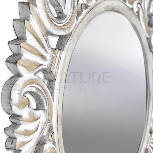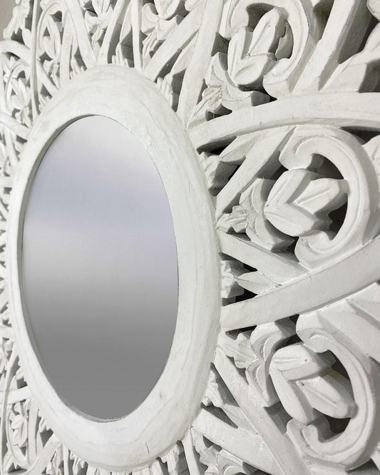 Hand Carved Mirror "Rasa" - White - 60 cm
