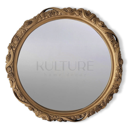 Hand Carved Mirror "Roopa" in Gold Antic Wash - 80 cm