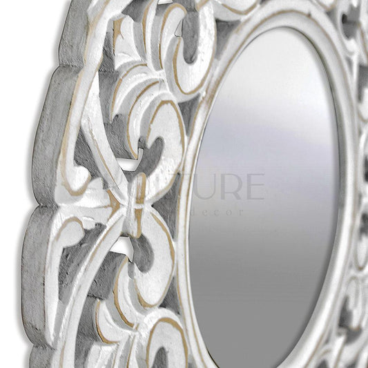 Hand Carved Mirror "Amed" White Wash - 70 cm