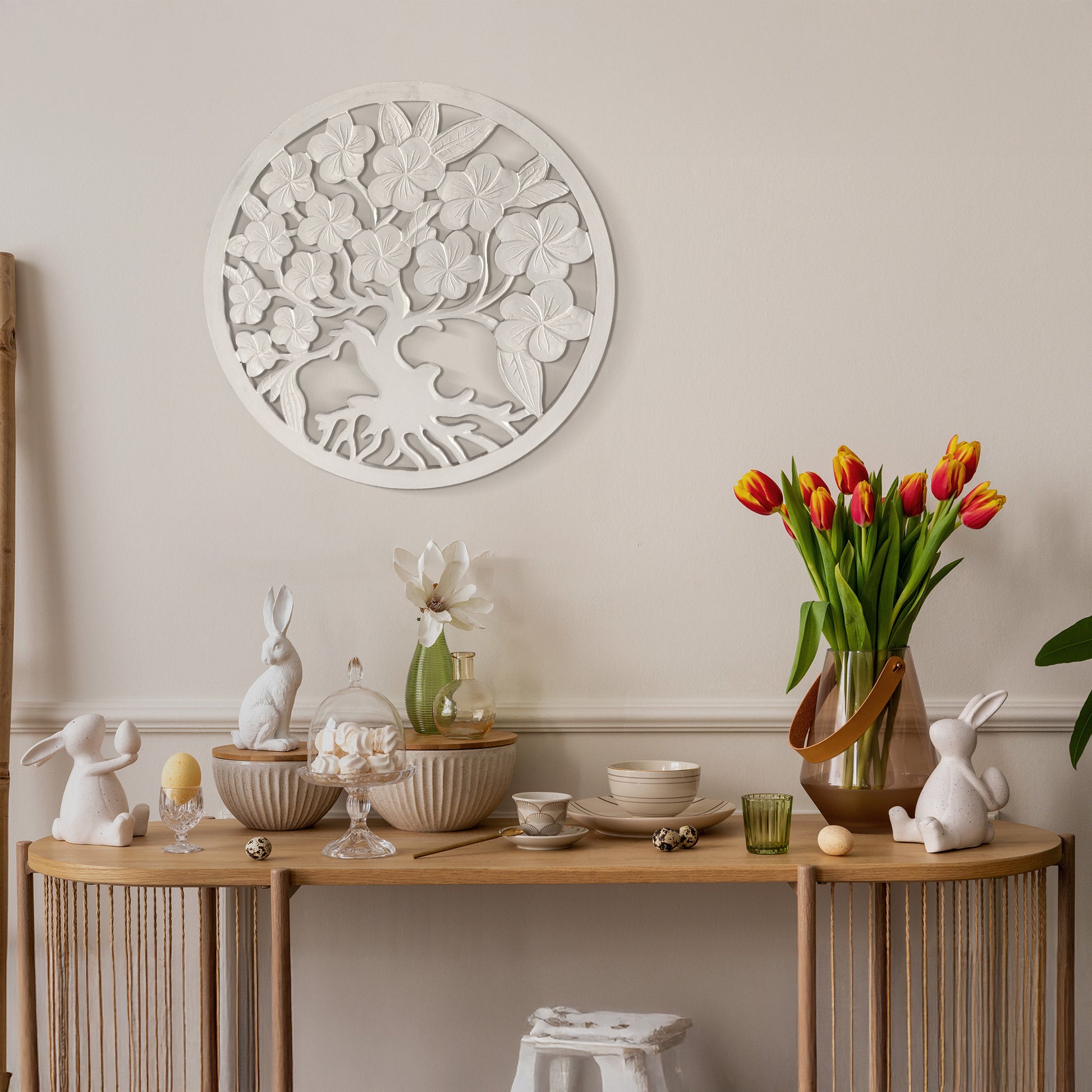 The tree of life has a strong symbolic meaning in different cultures. It generally promotes wellness and generosity. Guaranteed to bring peaceful vibes to your home!